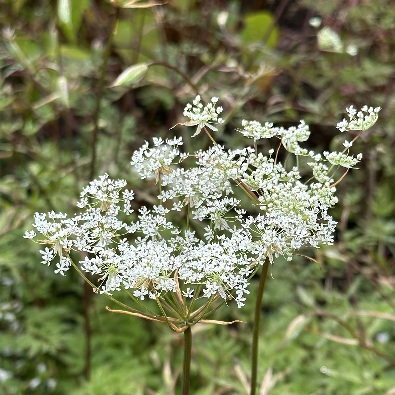 We were introduced to Nothosyrnium japonicum var. sutchuenense ‘Loushan Filigree’ by Dove Cottage Nursery a couple of years ago when it was named as an angelica. What a wonderful plant it is too! Like Selinum wallichianum this is another fabulous late flowering umbel. In late August and throughout September it produces a mass of dark upright wiry stems topped with pure white delicate lacy umbels. I have planted it in part shade and full sun and it has done brilliantly in both situations. It is a wonderful addition to the late Season garden and combines beautifully with tender salvias, grasses, asters and japanese anemones. Highly recommended.